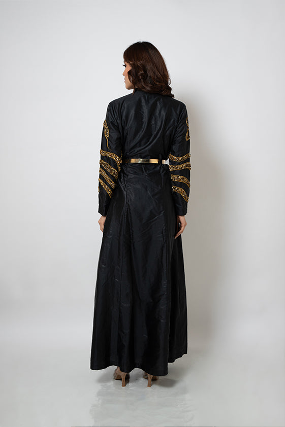 Design: Black jacket with serpent dabka and sequin hand embroidery