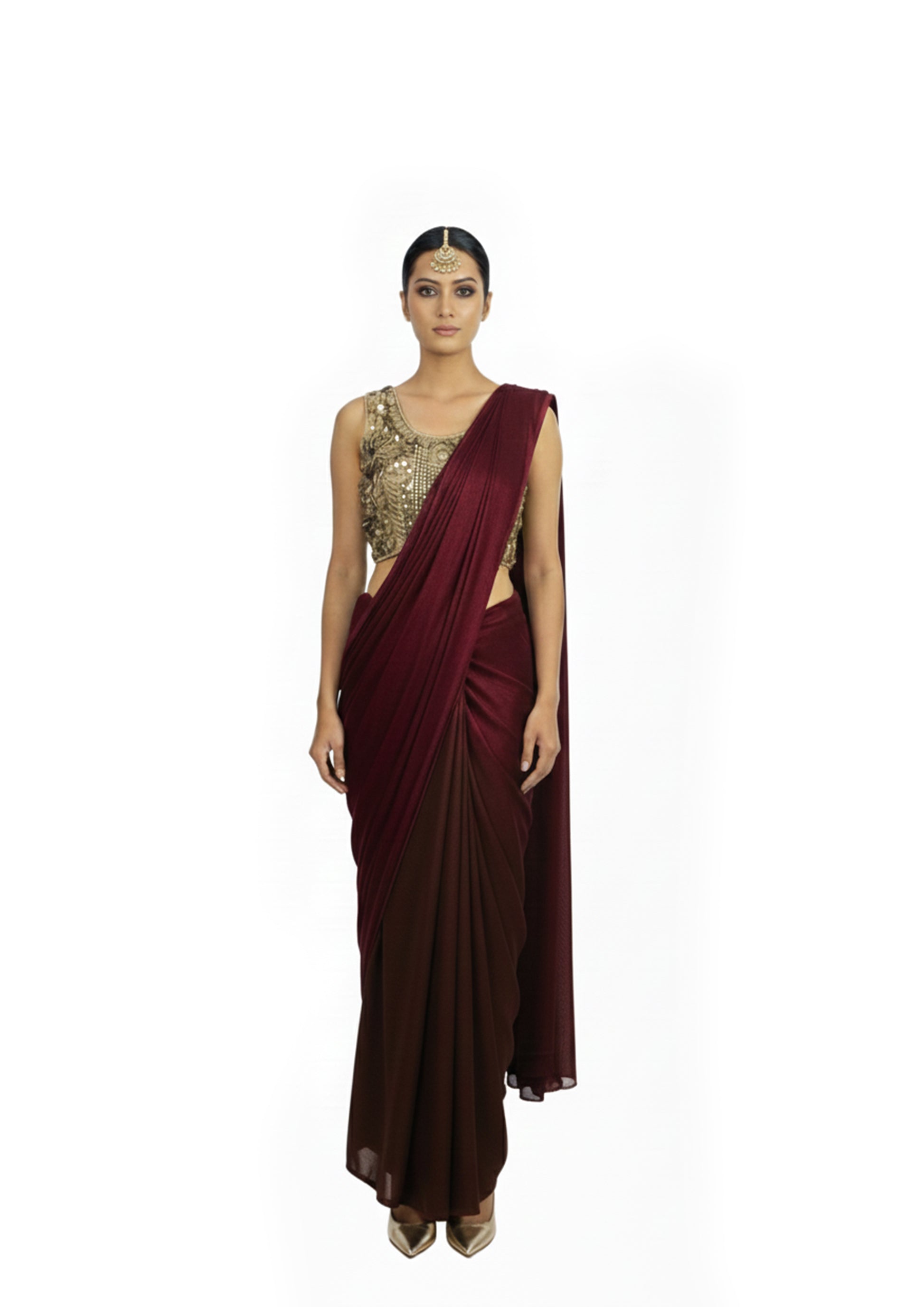 Custom made | This consists of 1 blouse, saree and petticoat.
